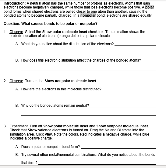 Gizmos Student Exploration Polarity And Intermolecular Forces Answer Key / Solved Activity A Polarity Get The Gizmo Ready Check T Chegg Com / In the polarity and intermolecular forces gizmo you will explore how these opposing forces relate to bond types and the forces between molecules.